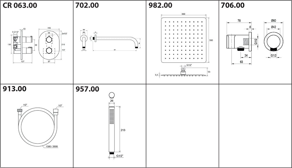 Sedemdielny sprchový set Chrome s podomietkovou termostatickou batériou. Vo vyhotovení lesklý chróm.