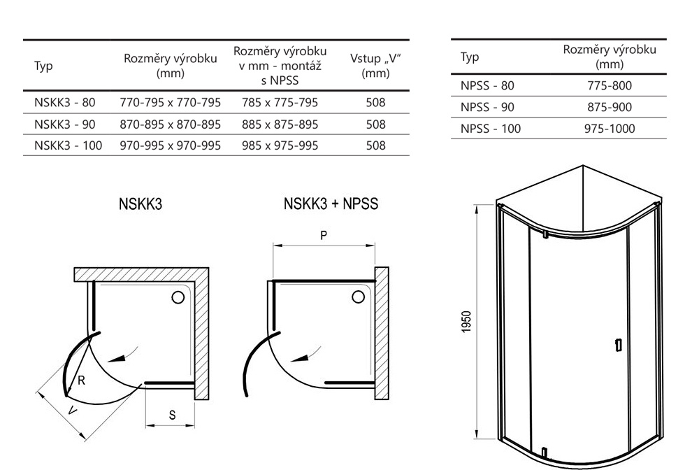 Výrobok tvoria dva pevné rovné diely a jeden ohýbaný diel ako otočné dvere. Otočením výrobku o 180° získate ľavý alebo pravý variant otvárania dverí. Montuje sa do obloženého rohu kúpeľne na vaničky Ravak Ronda, Elipso, Elipso Pro, Elipso Pro Flat, Elipso Pro Chrome alebo priamo na podlahu so zabudovaným odtokovým žľabom či podlahovým vpustom. Ak nedisponujete vymurovaným rohom, priečku môžete nahradiť pevnou stenou typu NPSS. Pomocou nastavovacích profilov NNPS sa výrobok vie prispôsobiť stavebnému otvoru až o 4 cm na každej strane.