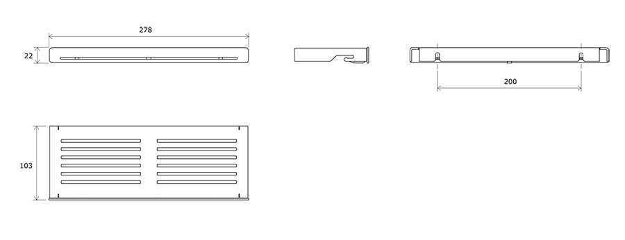 Rovná plocha poličky je perforovaná tak, aby se voda nedržela na povrchu, přesto však poskytuje stabilitu umístěným předmětům. Po stranách poličky se nachází praktické háčky k zavěšení žínky. Uprostřed poličky je uchycen spodní háček, který udrží i těžší předmět jako je například fén. Kombinací dvou a více kusů poliček docílíte efektní sestavy s extra odkládací plochou. Doporučujeme kombinovat s rohovou poličkou Slim C.Na vnější čištění doporučujeme používat přípravek Ravak Cleaner Chrome. Montáž na dvě hmoždinky. Rozteč šroubků je 200 mm.